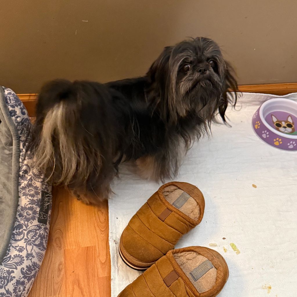 Lucy Lou is a Black Imperial Shih-Tzu who is CKC registered & Embark tested. Her genetic color panel: Em/e, KB/ky, ay/ay, D/D, B/b, S/S, m/m, r/r, h/h. Born December 22nd 2020.